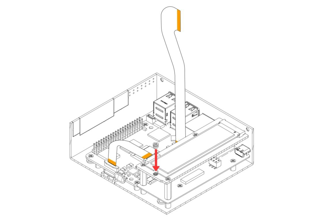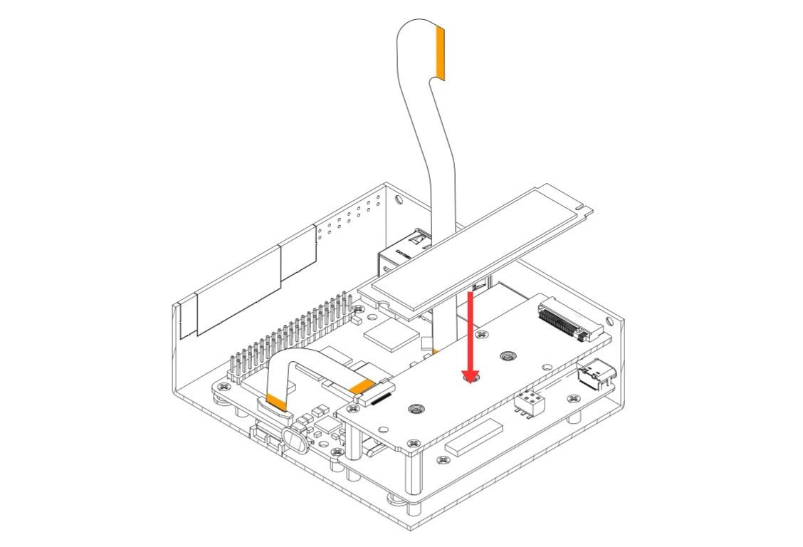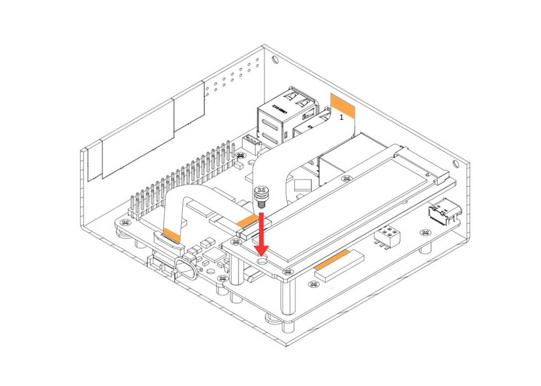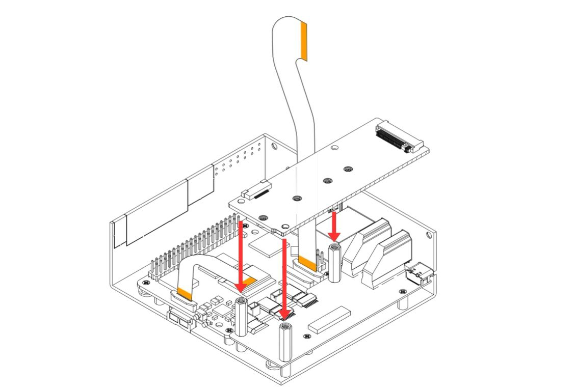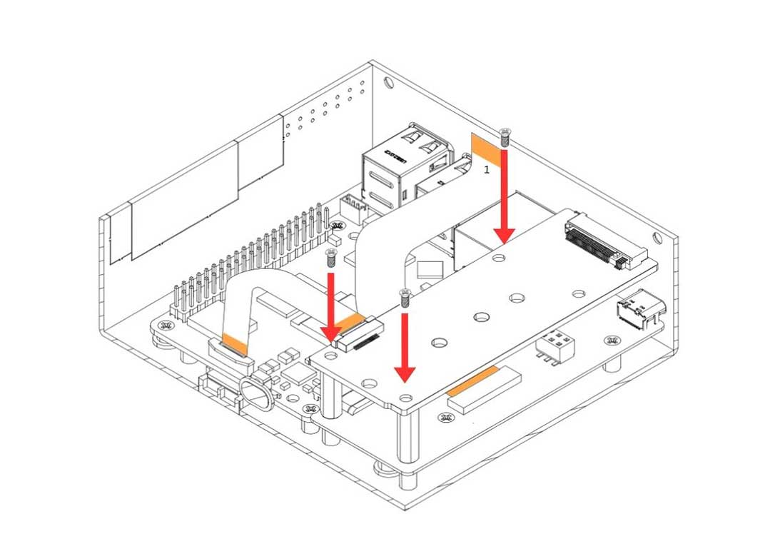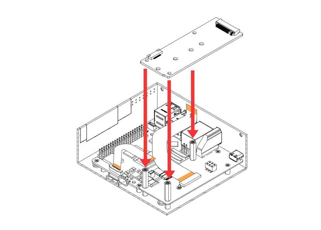 6. Carefully attach the Argon HMI NVMe Board on top of the Argon HMI-HDMI Board. Please align the NVMe Board to the Standoffs and secure using the Flat Head Screws.