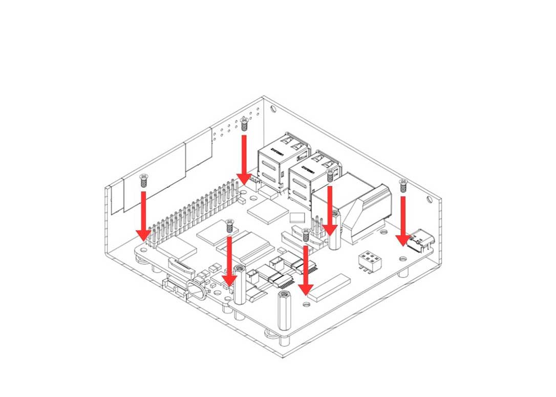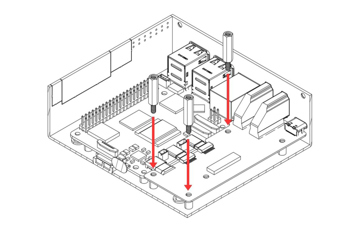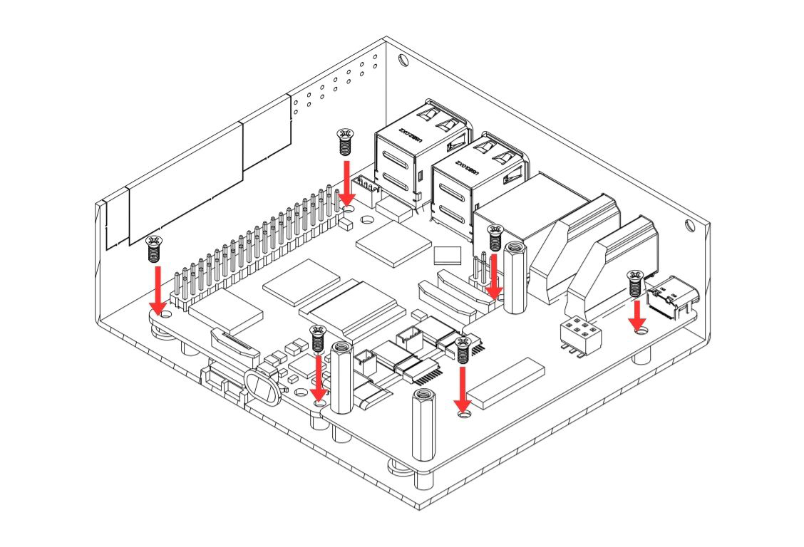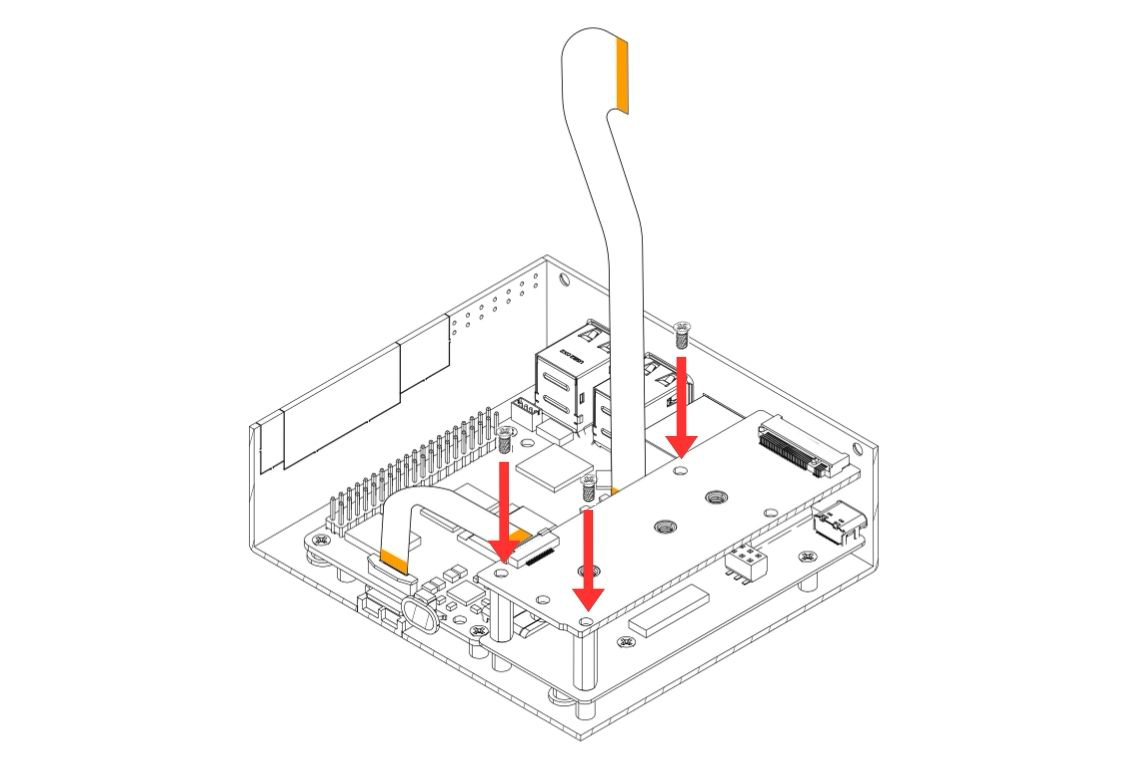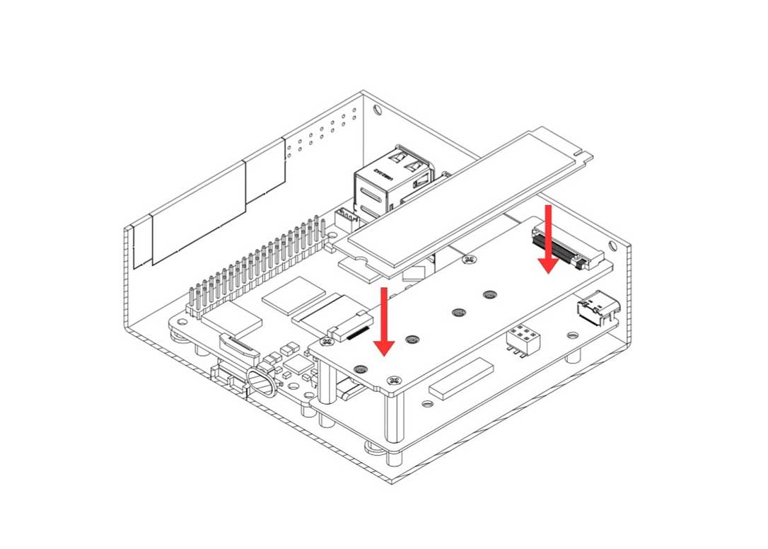 6. Carefully attach the Argon HMI NVMe Board on top of the Argon HMI-HDMI Board. Please align the NVMe Board to the Standoffs and secure using the Flat Head Screws.