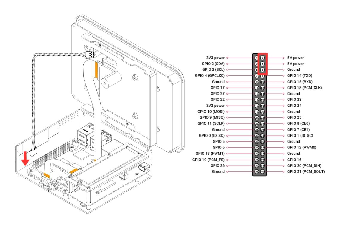12. Carefully connect the 3 pin end of Power Supply Cable to the GPIO. Make sure it is connected to the 2x 5V power (2,4) and Ground (6).