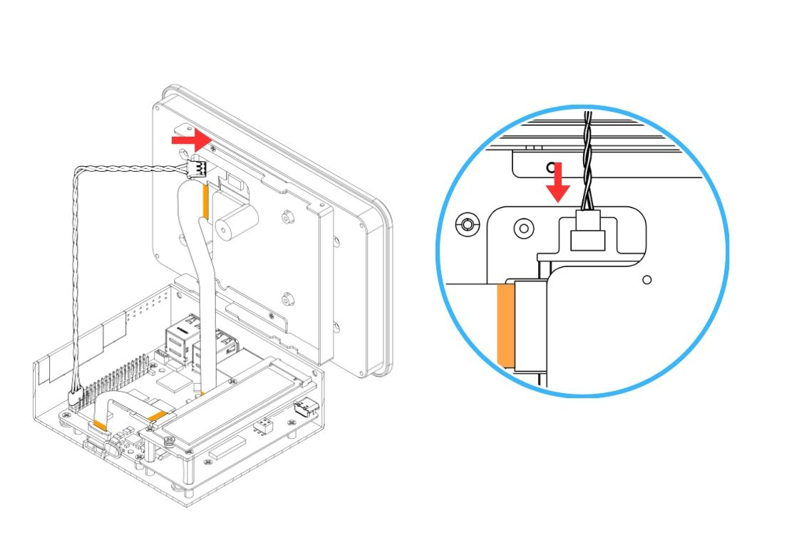 13. Carefully connect the 2 pin end of the Power Supply Cable to the Argon Touch Display. Make sure it is connected properly.