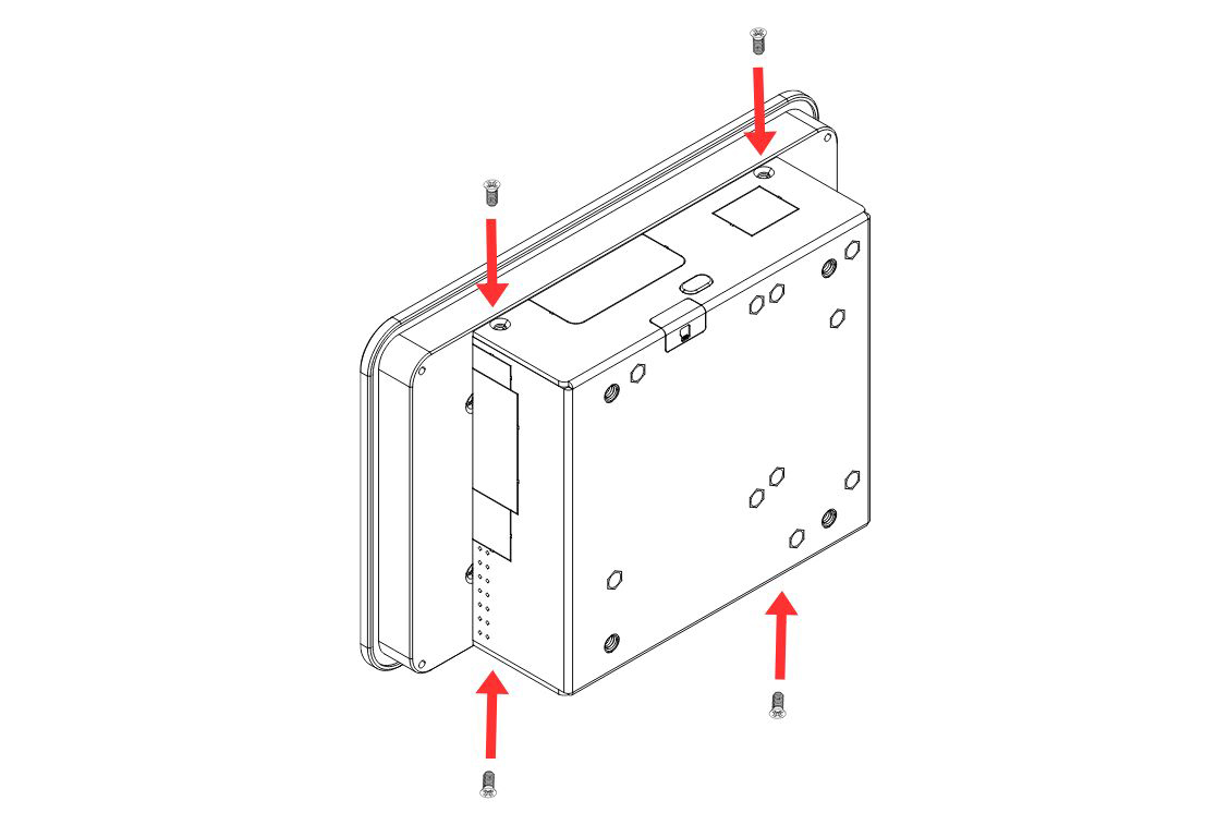 14. Carefully attach the HMI Display to the Body. Secure it using the SIlver Flat Head Screws.