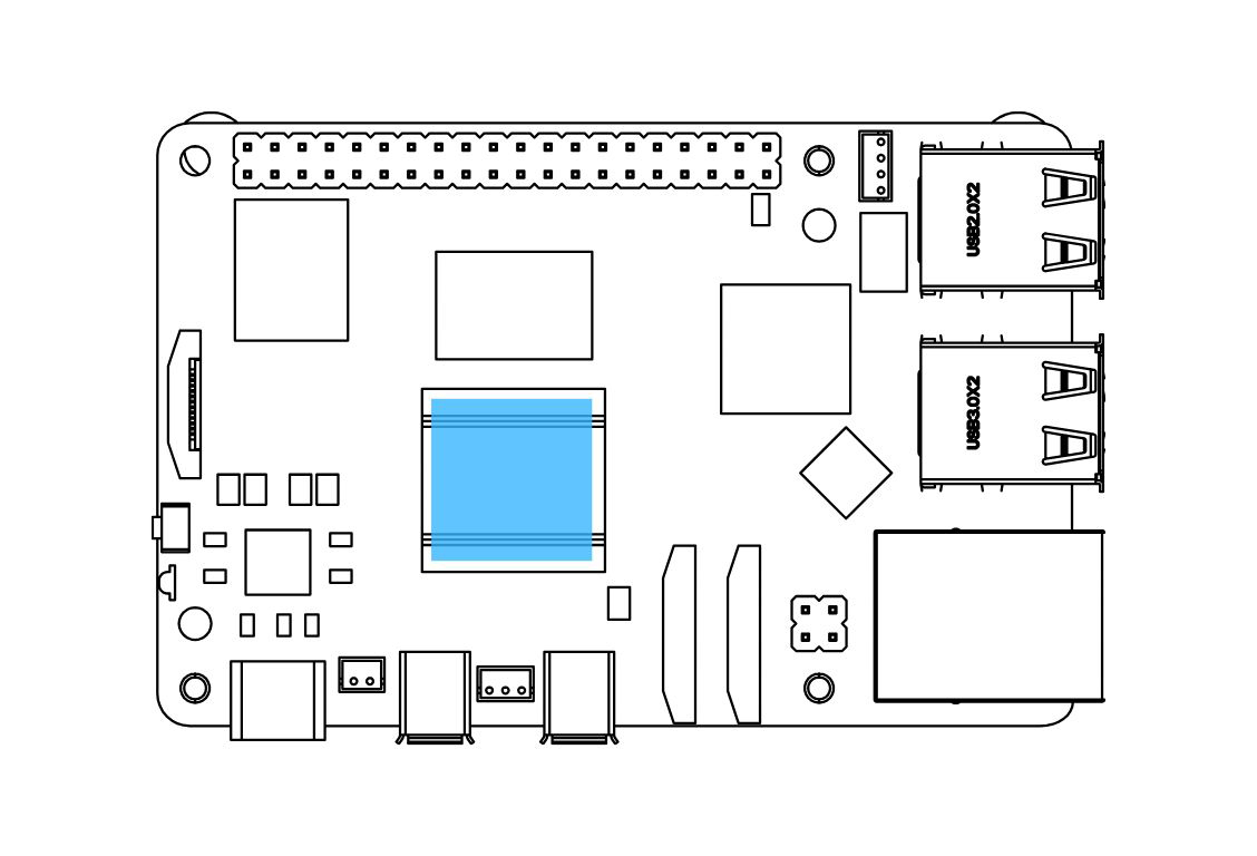 1. Apply the Silicon Thermal Pad on the Raspberry Pi 5. Make sure to REMOVE THE TRANSPARENT BACKING on both sides of the thermal pad.