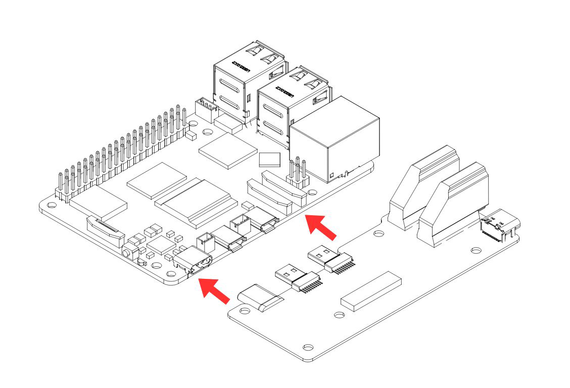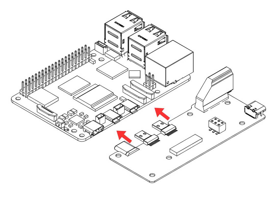2. Connect the Raspberry Pi 5 to Argon HMI-HDMI Board. PUSH ALL THE WAY IN the Argon HDMI Daughterboard, Make sure that the HDMI-Power Daughterboard is FULLY CONNECTED to the RPi 5 to AVOID POWERING UP ISSUES.