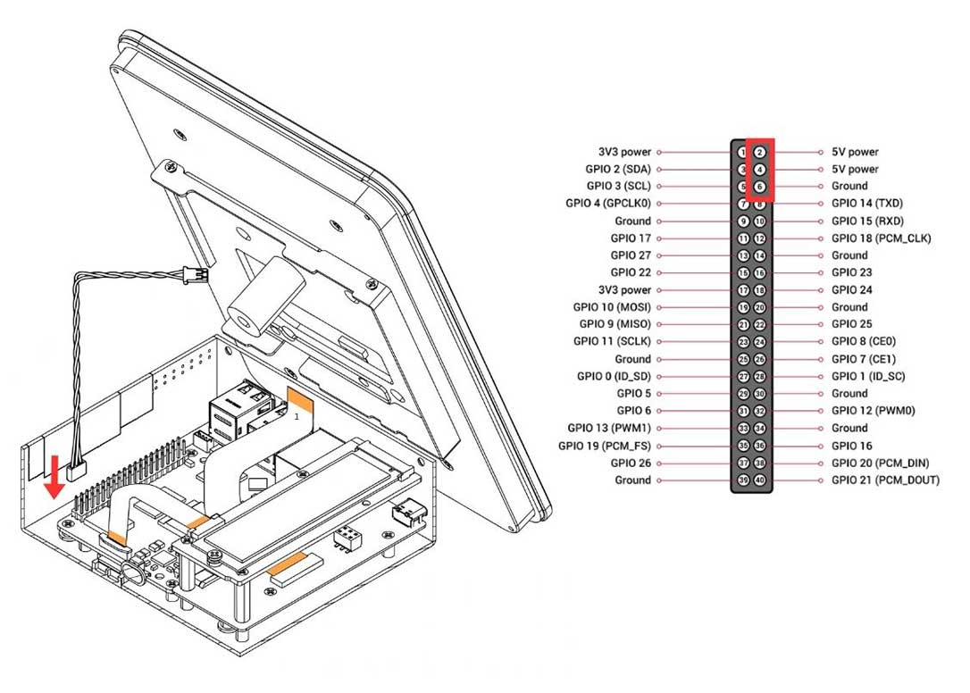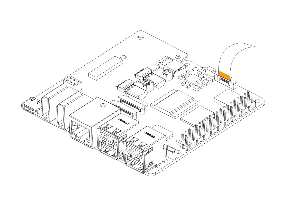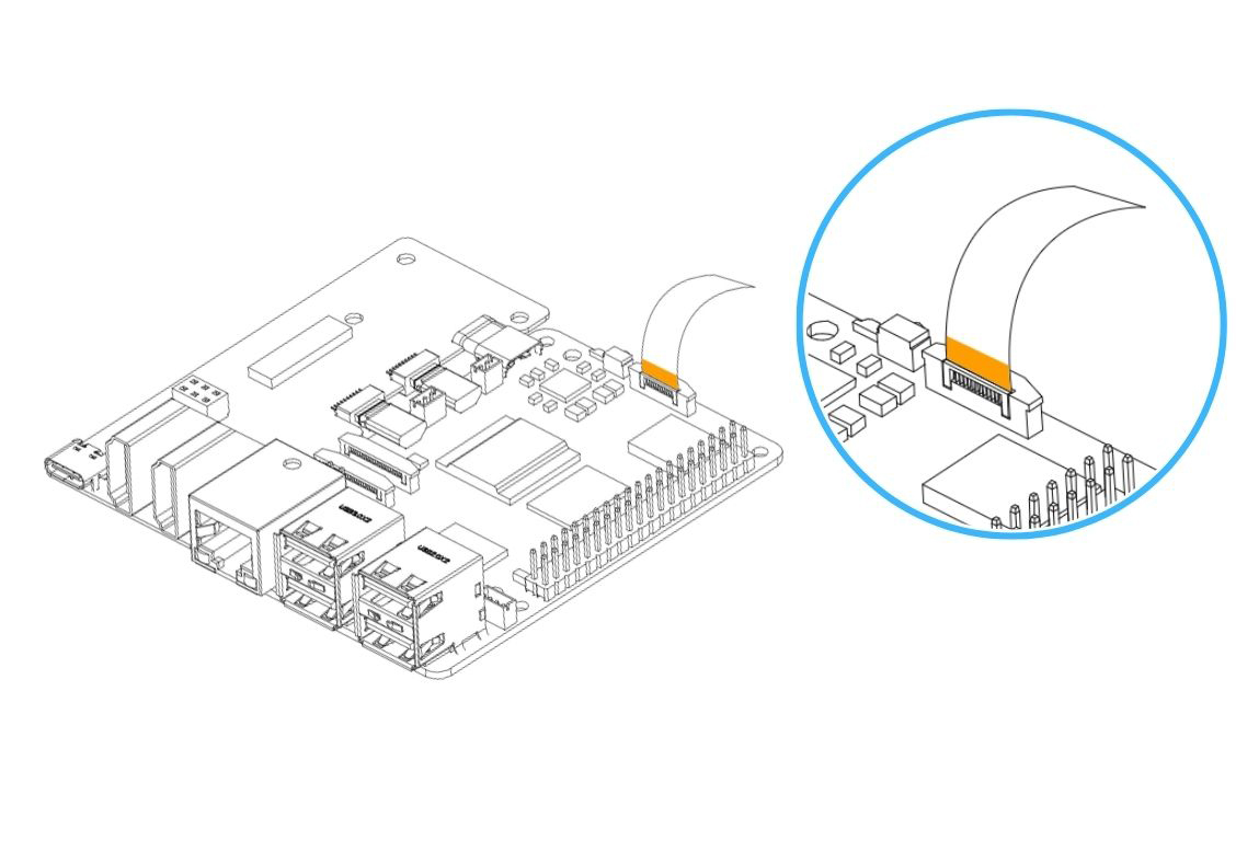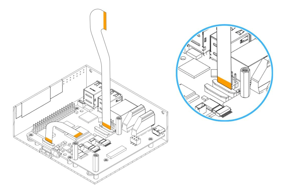 5. Carefully connect the HMI-Display Flat Flex Cable to the Raspberry Pi 5. Be careful when handling the flip/cover. Pull the flip to release the lock.