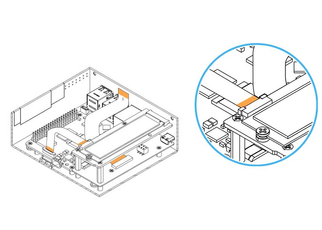 7. Connect the M.2 SSD to the Argon HMI NVMe Board and secure it using the NVMe Scew.