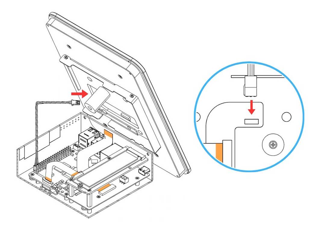 9. Attach the Passive Cooling Column and the Argon 5"/7" Touch Display to the Display Case and secure it using the Flat Head Screws.