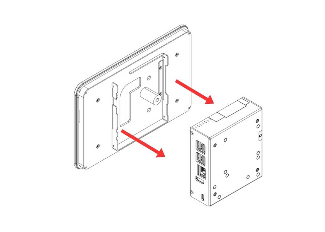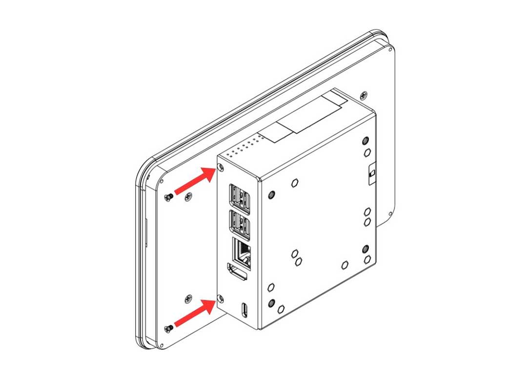 10. Attach the Argon 7"/8" Touch Display to the Display Case and secure it using the Flat Head Screws.