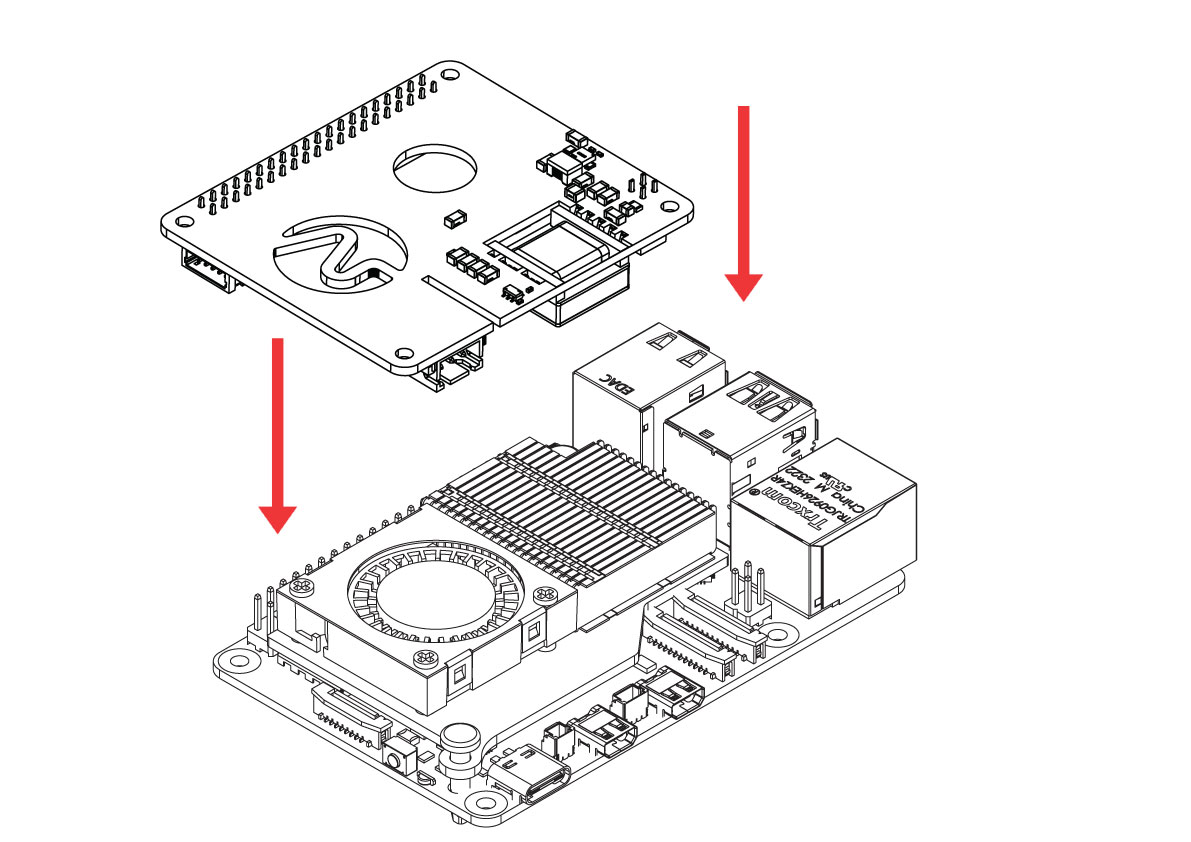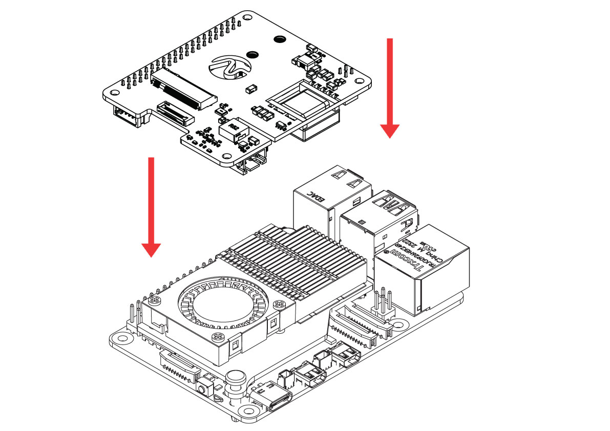 Align the HAT with the 40-pin GPIO and the 4-pin PoE header.