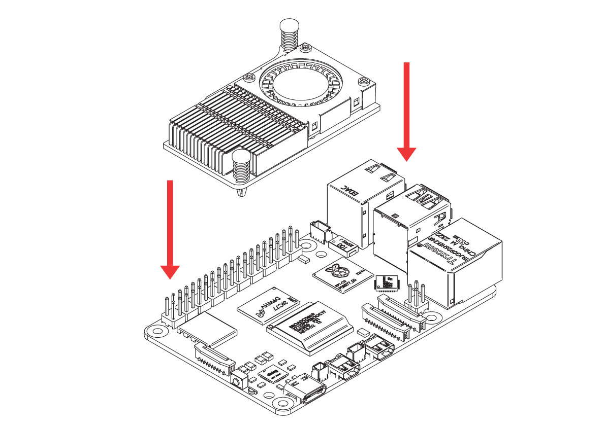 1. Attach the Argon THRML Active Cooler on the Raspberry Pi 5.